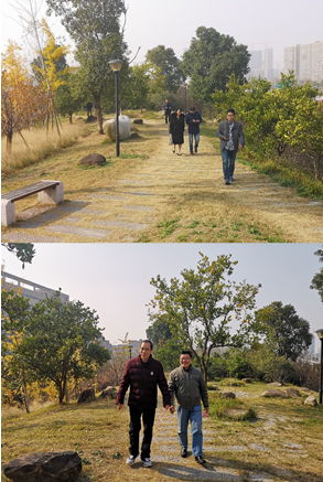 办公室117出发,结伴而行,一路欢声笑语,其乐融融。天气虽稍凉,但老师们兴致勃勃,健身走的集体活动让大家都有了浓浓的暖意。许多老师途中还登上了校北山坡,俯瞰校园美丽景色。健身走的终点设在6号禁漫岛