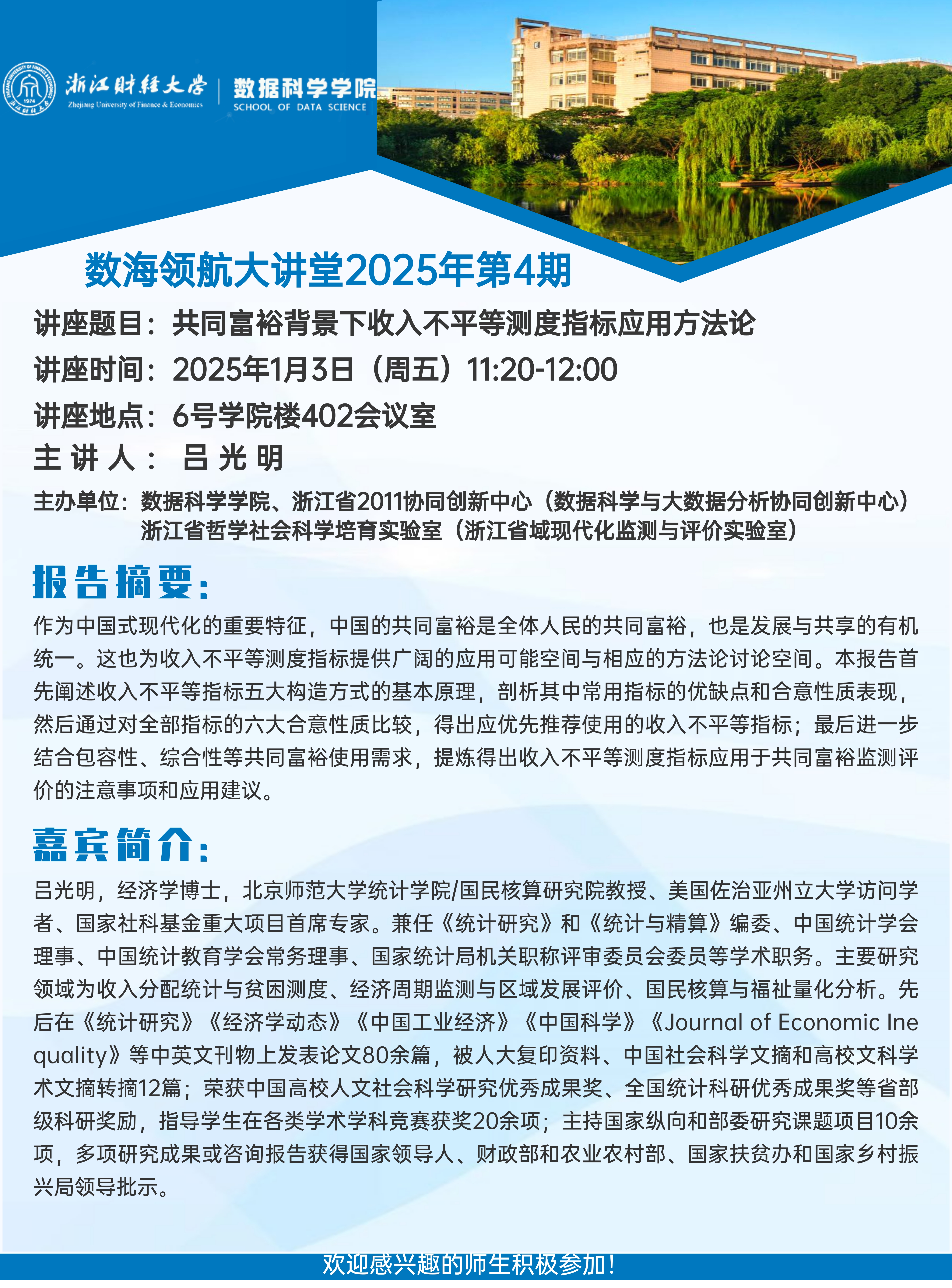 上一条:禁漫岛 讲座信息——澳大利亚莫道克大学王海副教授 下一条:数海领航大讲堂2025年第3期-西南财经大学马丹教授