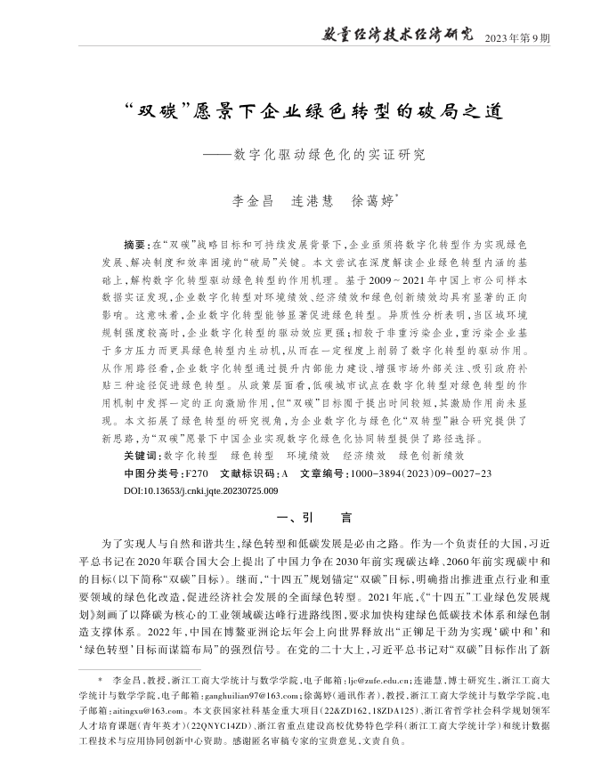 “双碳”愿景下企业绿色转型的破局之道——数字化驱动绿色化的实证研究 |