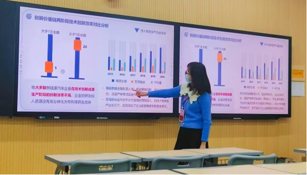 硕士研究生陈传龙、高珊珊、周逸宁、邹璐分别作了题为《中国省际资本服务测算及演变研究》《创新价值链视域下新能源汽车产业政策效应研究——基于多时点DID模型》《中国区域旅游卫星账户框架构建及实践探讨》《区域协调发展新模式“飞地经济”实施效果的测度与评价》的分组报告。报告得到与会专家学者的充分肯定。