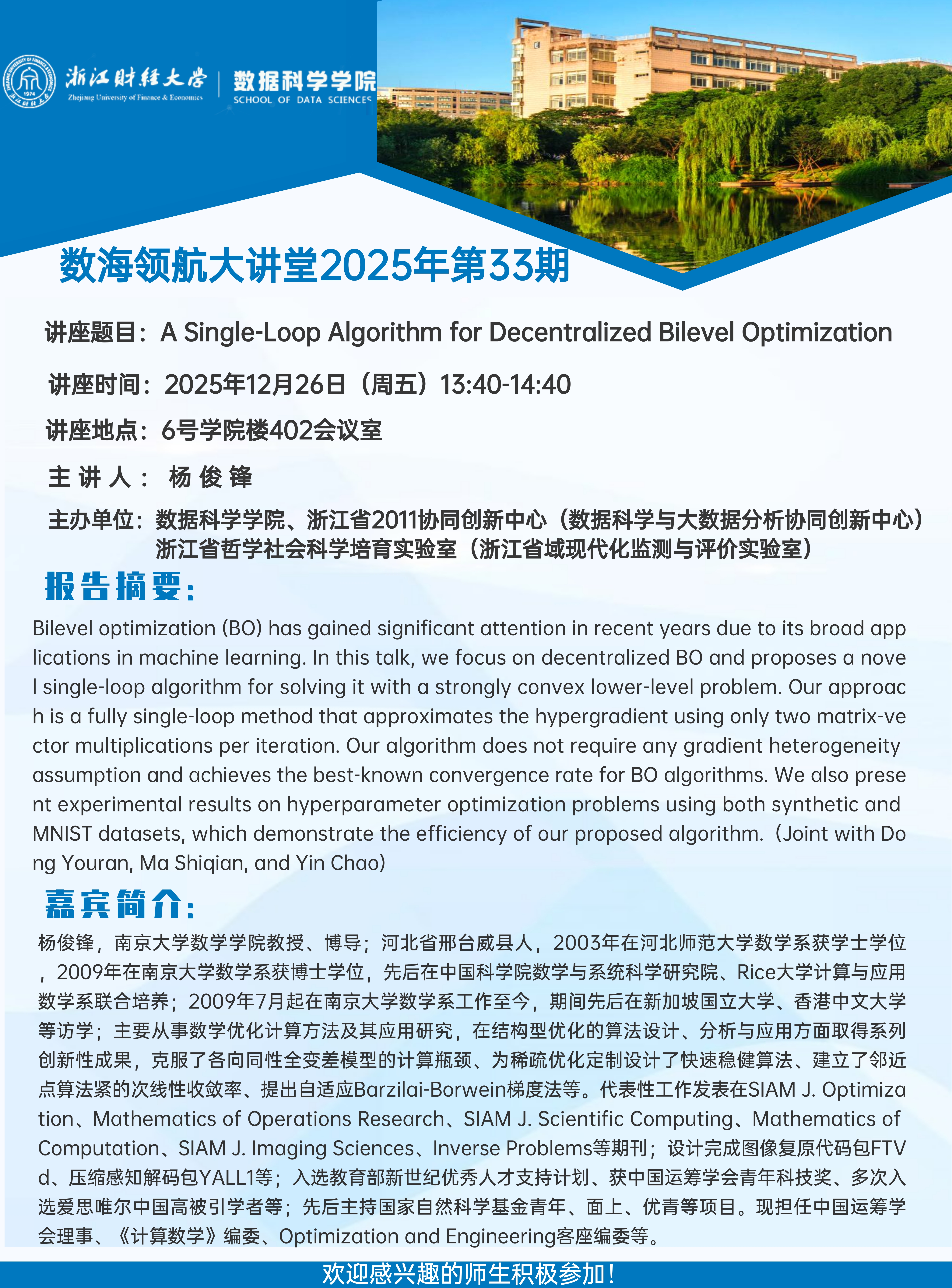 上一条:数海领航大讲堂2025年第34期——南京师范大学徐玲玲教授 下一条:数海领航大讲堂2025年第32期——加州大学河滨分校姚卫鑫教授