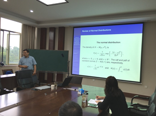 报告会上,王通会教授深入浅出地介绍了偏正态分布族的发展背景,偏正态分布的性质和应用,Copula及相关性度量,并介绍了一些最新的研究成果。