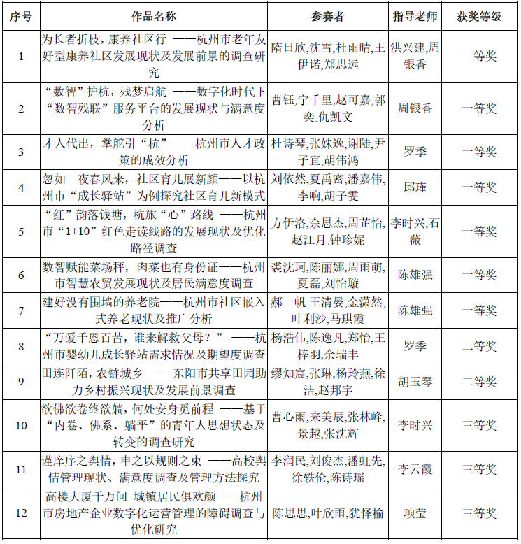 浙江省大学生统计调查方案设计大赛以“深入实际、调研社会”为主题,旨在通过设计调研统计方案,采集分析数据,现场汇报展示等环节,鼓励学生积极主动开展统计调查研究,培养大学生调研能力、数据处理能力、统计分析能力和团队合作能力,达到以赛促学、以赛促用的效果。
