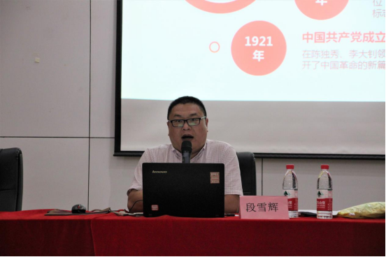 党委书记段雪辉围绕“学党史·守初心·奋力走好新时代的长征路”,透过土地改革、抗日战争、改革开放几个历史事件,深入浅出地论述了我们党在新民主主义、社会主义建设和革命、改革开放和社会主义现代化建设三个时期的历史发展,以史鉴今,引领学生思索新时代新道路。