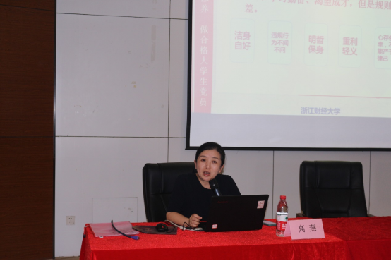 党委书记、副院长高燕就“如何做合格大学生党员”,提出党员应当不断加强党史学习,提高自身党性修养和思想觉悟,并倡导学生党员洁身自好、明哲保身、严于律己。