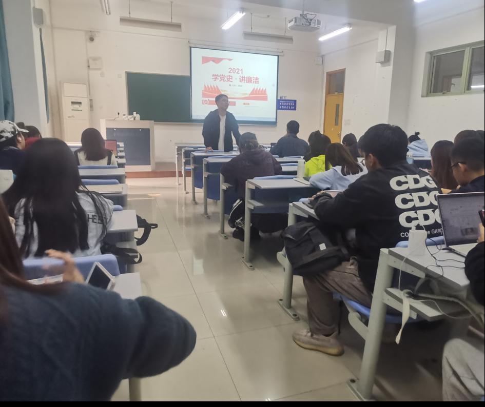 应用统计学本科生党支部于B-103教室开展了“学党史,讲廉洁”为主题的警示教育专题学习党日活动。活动由党支部书记江挺主持。
