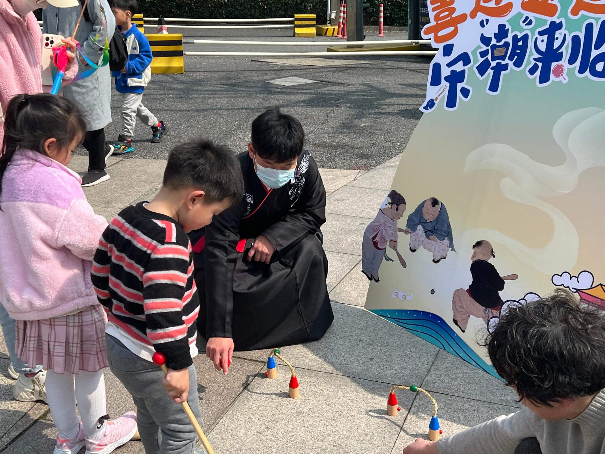 组织志愿者来到临平区科技馆参加以“喜迎亚运·宋‘潮’来临”为主题的志愿服务活动。活动现场,志愿者们和孩子一起通过科技、益智、美学、面孔、腔调、穿搭等14个互动项目,带领小朋友们一起“穿越”宋朝,沉浸式领略宋代风情,一睹精巧典雅的大宋匠心。
