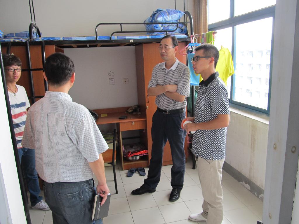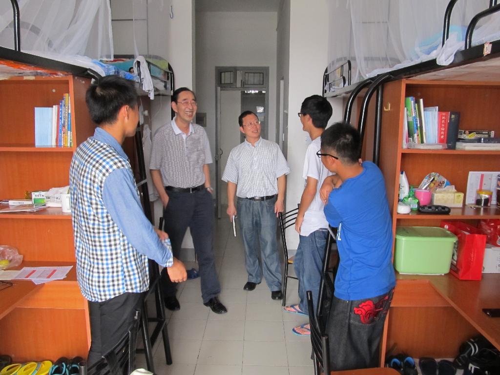 党总支书记杨辉煌、党总支副书记周君兴的在新生辅导员的陪同下,走访了2013级新生寝室。