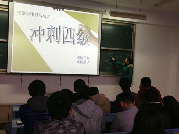 12月9日晚6:30,12数学班在B楼313开展了“冲刺四级”的主题班会团日活动。