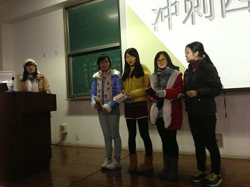一个穿插的小游戏以后,主持人介绍了今天班会的重点比赛项目。在比赛中,大家绞尽脑汁,想要通过一些合适的单词词组句子来告诉队友自己想要表达的意思。最后,经过大家的不懈努力,有三个小组成功的获得了前三的好成绩。
