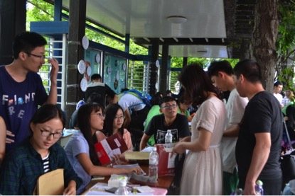 虽然天空飘着小雨,但是各班班导以及学生会志愿者的热情丝毫没有减少,早早地在文化长廊准备好各种材料,以饱满地精神和细致地服务等待新生们的到来。同时,禁漫岛