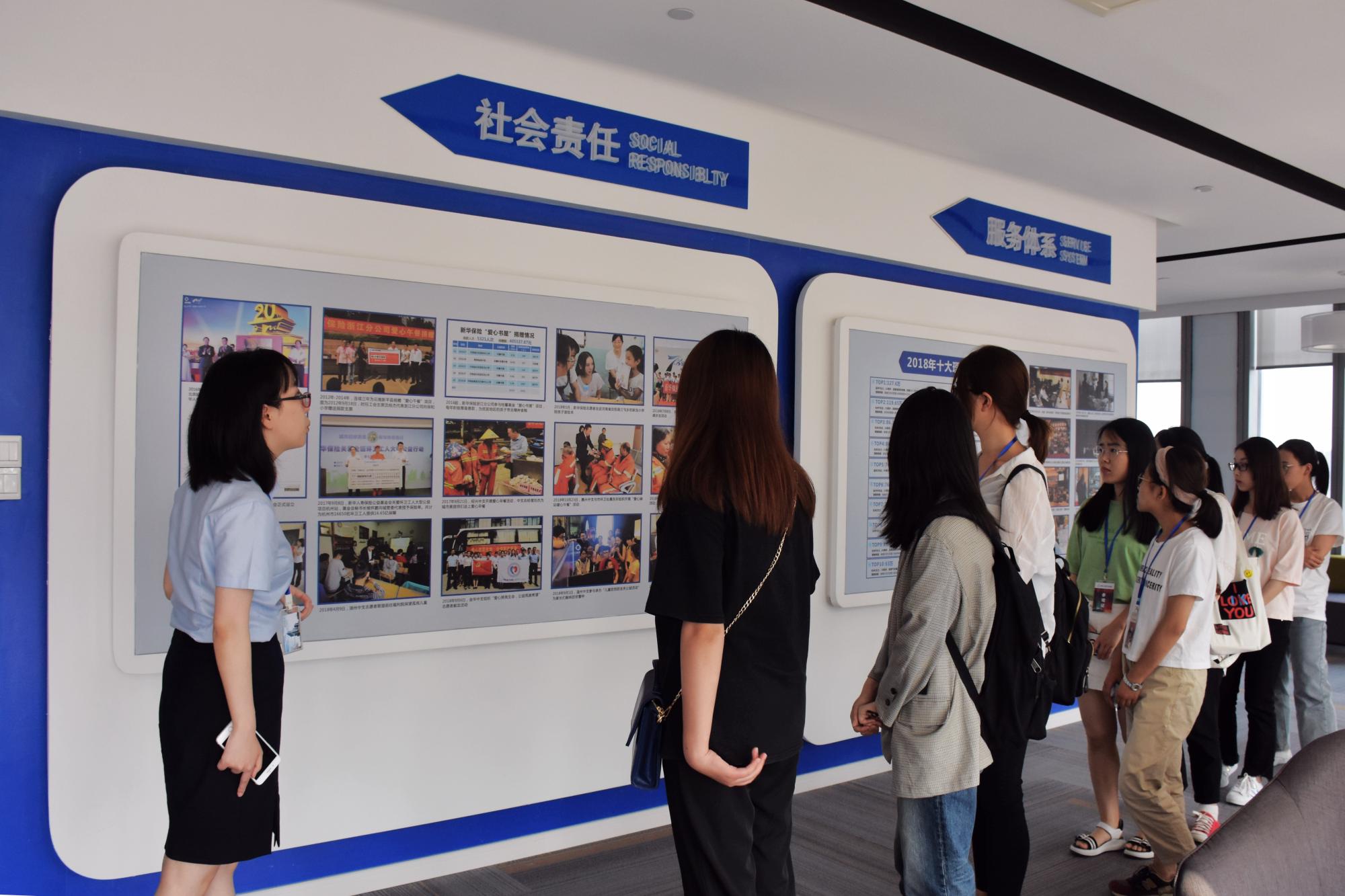 老师和前来参观的学子,新华保险干部管理室经理陈亦宁简要介绍了新华保险的独特之处与校园暑期招聘情况等事宜,与在场学生就参加新华保险企业开放日的理由与目的展开了亲切互动,并就这一话题着重为同学介绍了在新华实习的体验与2019年暑期实习安排。