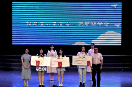 晚会中,由党委书记段雪辉、党委副书记何露霞为《郭桢爱心基金会·远航奖学金》三位获奖者颁奖,鼓励自强自立的数科学子继续扬帆远航。
