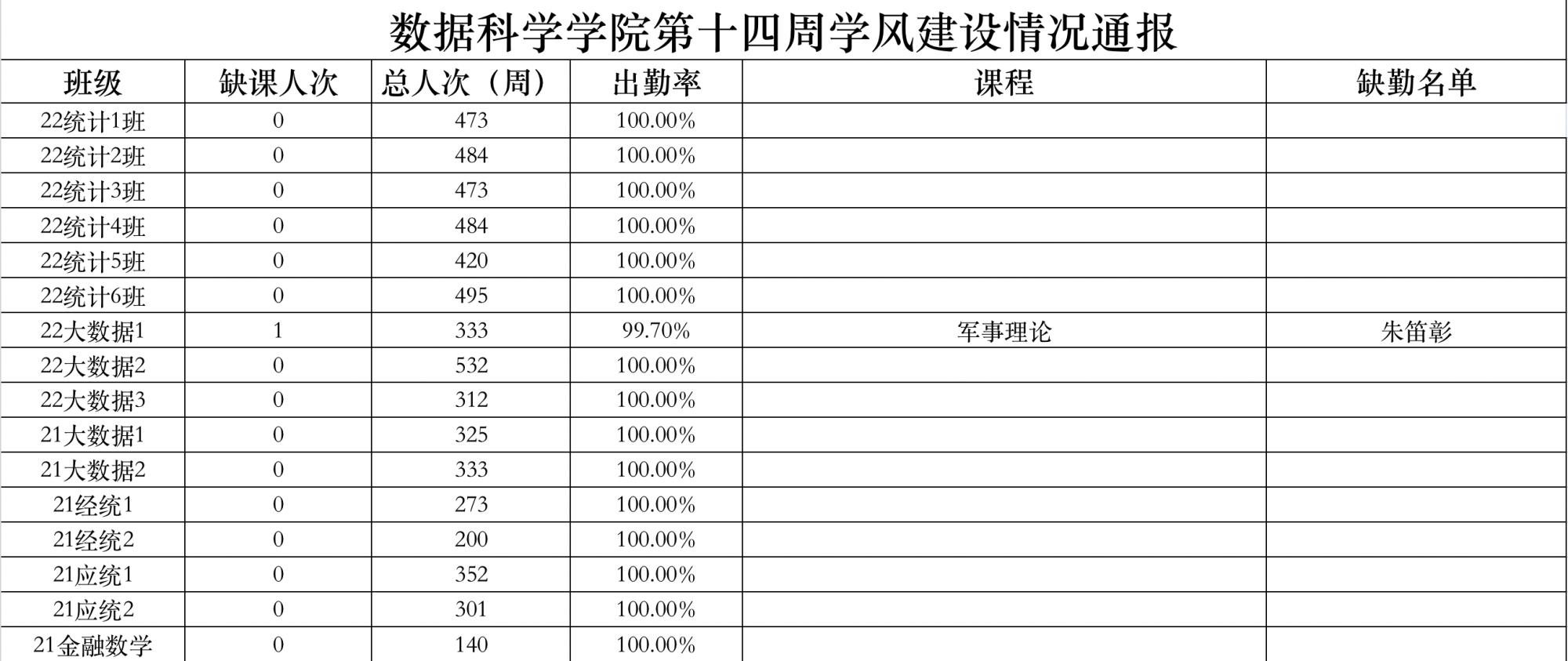 为进一步培育优良学风,构建禁漫岛 学风建设的长效机制,营造良好的学习氛围,推进内涵建设,构建优良院风,禁漫岛 对所有大一、大二班级统一上的课程及晚自习进行了课前全覆盖点名。现将点名情况做如下通报。