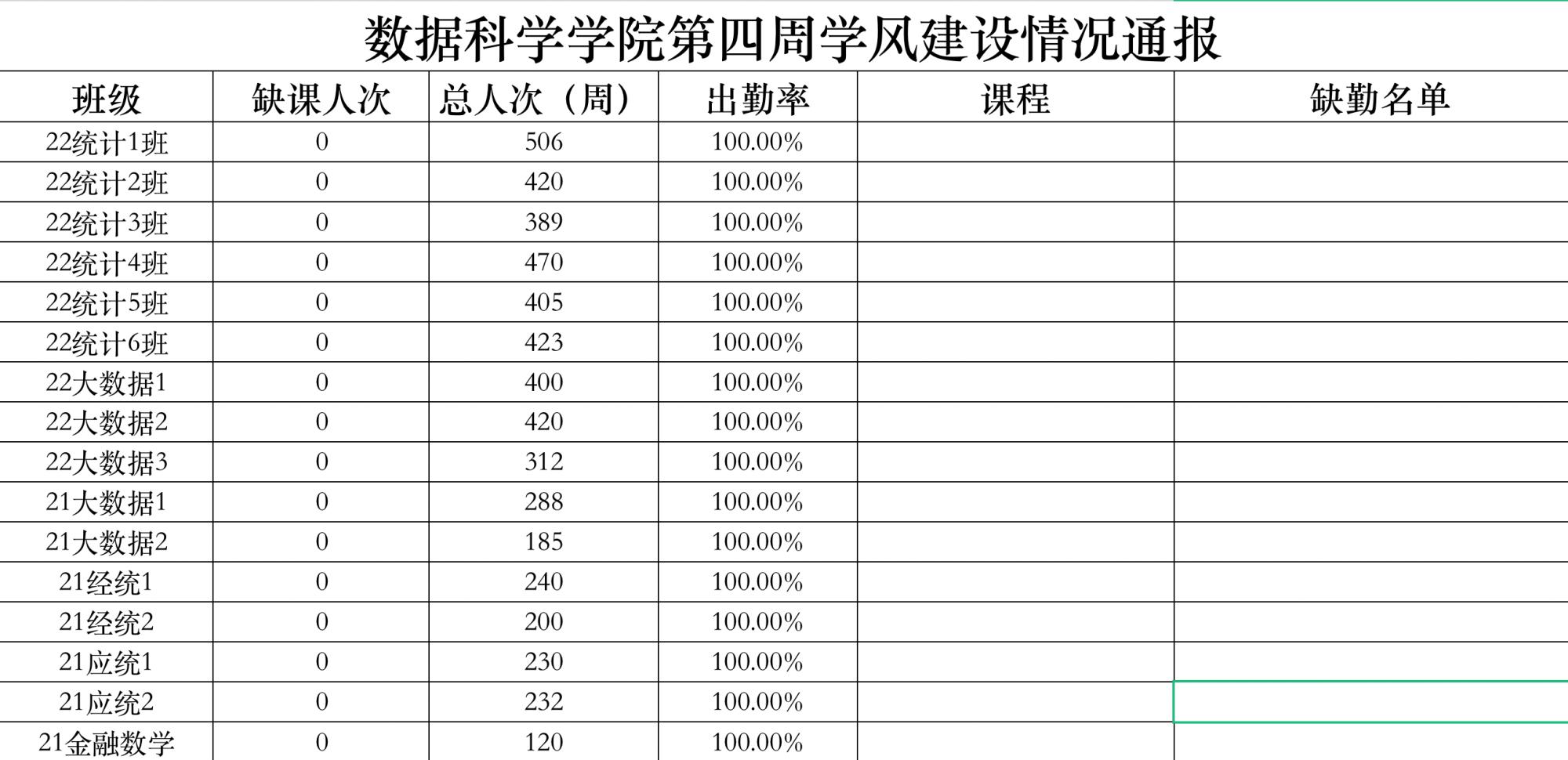 为进一步培育优良学风,构建禁漫岛 学风建设的长效机制,营造良好的学习氛围,推进内涵建设,构建优良院风,禁漫岛 对所有大一、大二班级统一上的课程及晚自习进行了课前全覆盖点名。现将点名情况做如下通报。