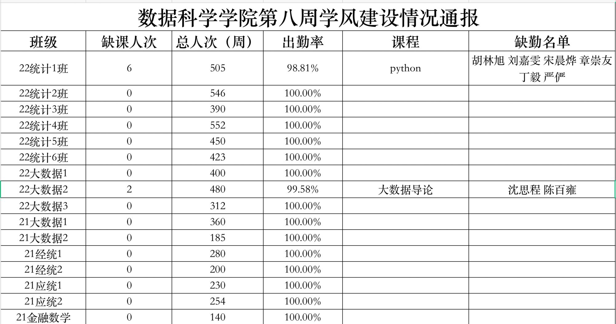 为进一步培育优良学风,构建禁漫岛 学风建设的长效机制,营造良好的学习氛围,推进内涵建设,构建优良院风,禁漫岛 对所有大一、大二班级统一上的课程及晚自习进行了课前全覆盖点名。现将点名情况做如下通报。