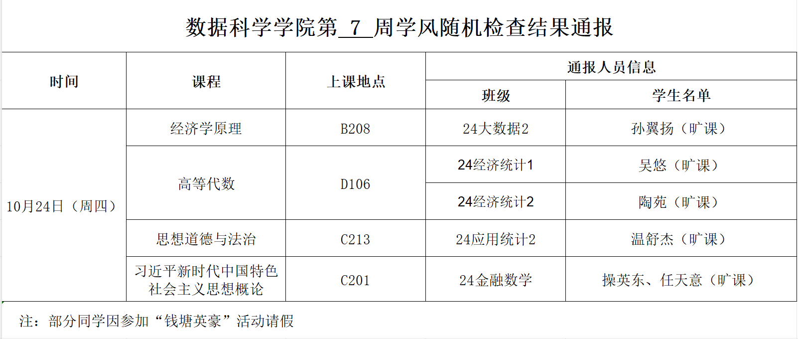 10月24日下午,禁漫岛 开展学风督查,禁漫岛 2024级新生辅导员徐翠、王彤彤、陈璐开展新学期学风第二次督查工作,对新生各班级课堂考勤、纪律及听课情况等进行随机检查。现将本次随机检查结果通报如下: