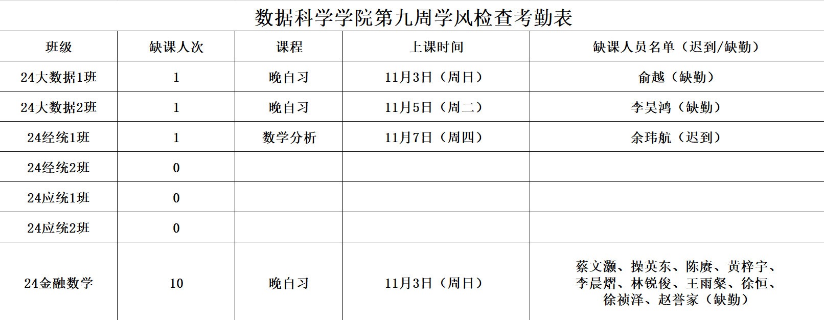 为进一步培育优良学风,构建禁漫岛 学风建设的长效机制,营造良好的学习氛围,禁漫岛 对大一各班晚自习及专业课进行全覆盖点名,对公共课程进行抽查点名,现将考勤情况公布如下: