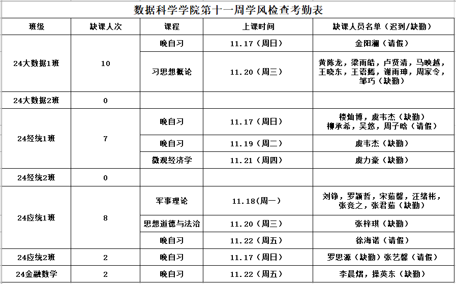 为进一步培育优良学风,构建禁漫岛 学风建设的长效机制,营造良好的学习氛围,禁漫岛 对大一各班晚自习及专业课进行全覆盖点名,对公共课程进行抽查点名,现将考勤情况公布如下: