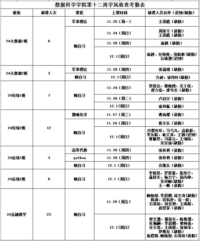 为进一步培育优良学风,构建禁漫岛 学风建设的长效机制,营造良好的学习氛围,禁漫岛 对大一各班晚自习及专业课进行全覆盖点名,对公共课程进行抽查点名,现将考勤情况公布如下: