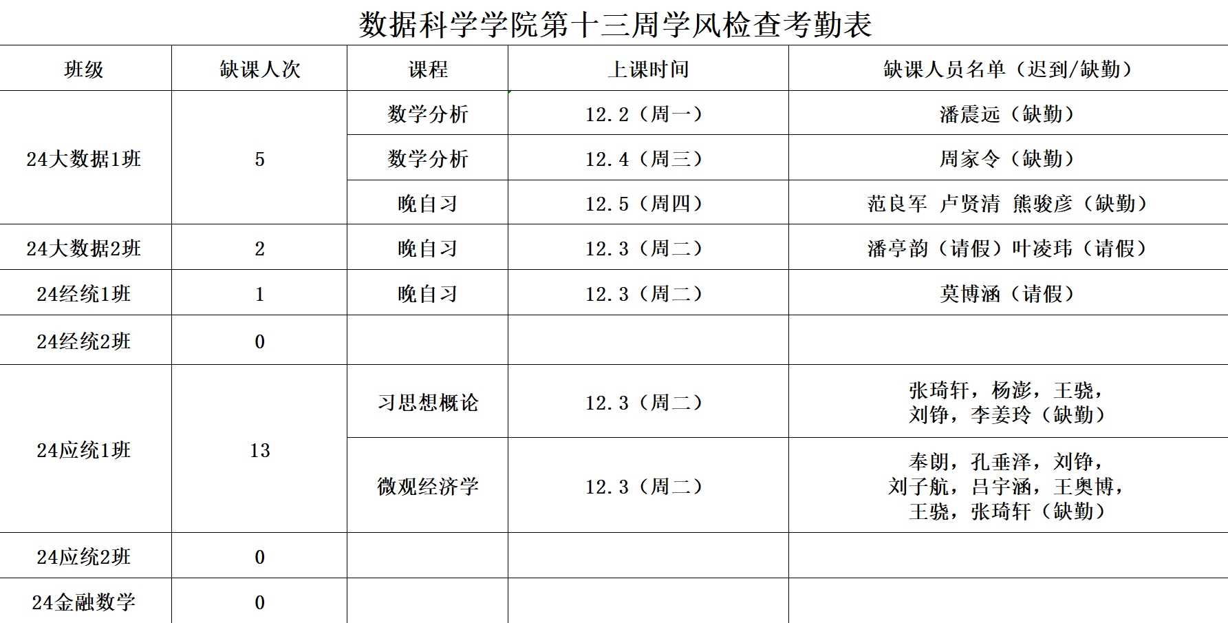 为进一步培育优良学风,构建禁漫岛 学风建设的长效机制,营造良好的学习氛围,禁漫岛 对大一各班晚自习及专业课进行全覆盖点名,对公共课程进行抽查点名,现将考勤情况公布如下:
