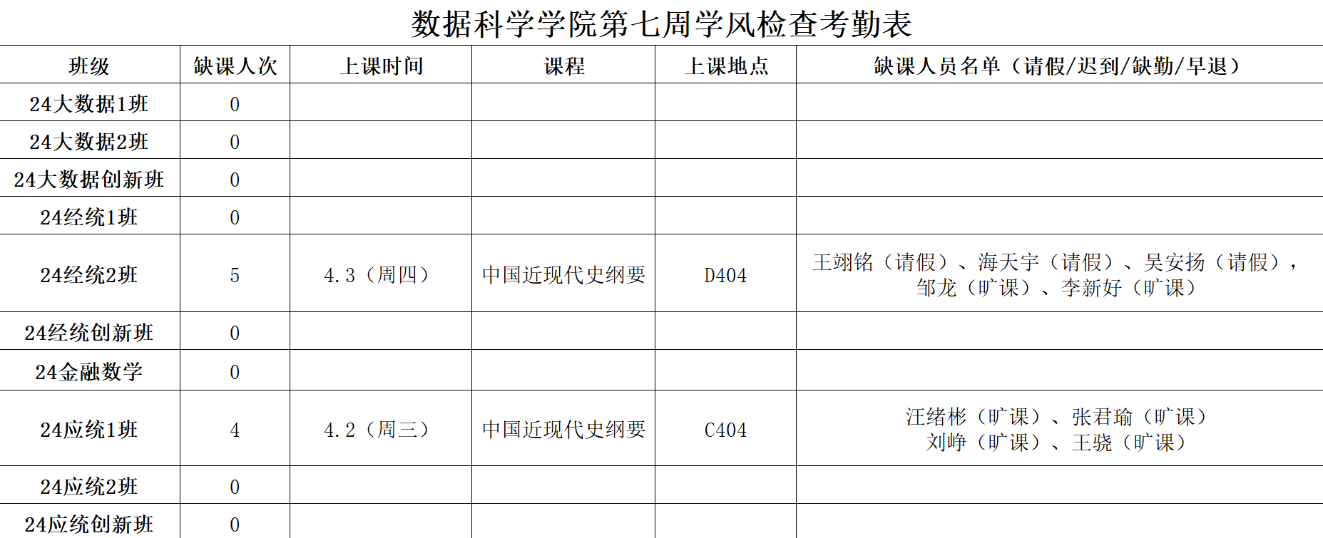 禁漫岛 学生工作办公室开展新学期第7周学风督察工作,对本科生各班级的学生前排就座情况,课堂考勤、纪律及听课情况等进行随机检查,现将本次随机抽结果通报如下: