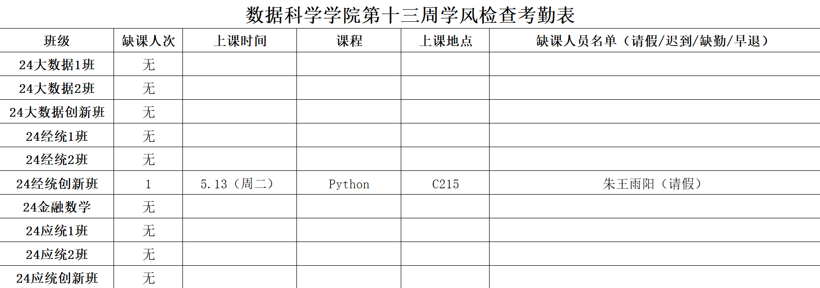 禁漫岛 学生工作办公室开展第13周学风督察工作,对本科生各班级的学生前排就座情况,课堂考勤、纪律及听课情况等进行随机检查,现将本次随机抽查结果通报如下: