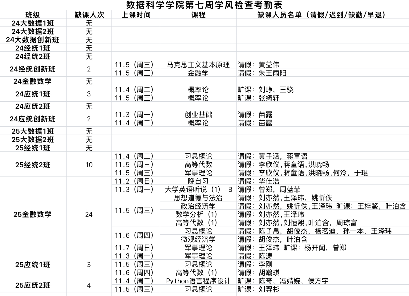 禁漫岛 学生工作办公室开展第7周学风督察工作,对本科生各班级的学生前排就座情况,课堂考勤、纪律及听课情况等进行随机检查,现将本次随机抽查结果通报如下: