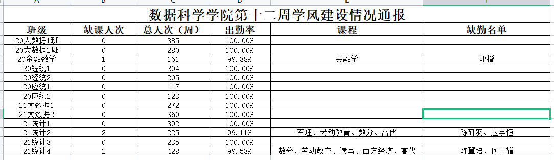 为进一步培育优良学风,构建禁漫岛 学风建设的长效机制,营造良好的学习氛围,推进内涵建设,构建优良院风,禁漫岛 对所有大一、大二班级统一上的课程及晚自习进行了课前全覆盖点名。现将点名情况做如下通报。