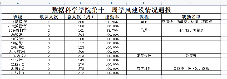 为进一步培育优良学风,构建禁漫岛 学风建设的长效机制,营造良好的学习氛围,推进内涵建设,构建优良院风,禁漫岛 对所有大一、大二班级统一上的课程及晚自习进行了课前全覆盖点名。现将点名情况做如下通报。
