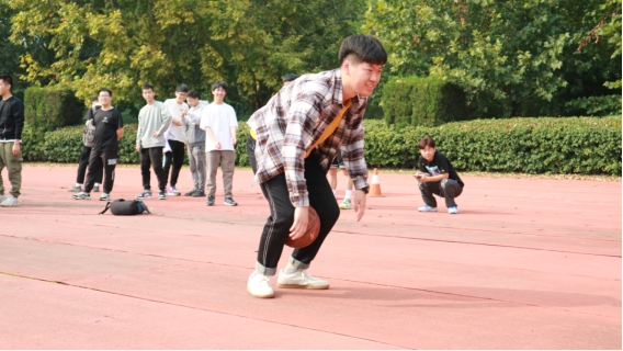 不知从哪里传来了一阵爆笑声,走近一瞧,原来是男生们在举行篮球接力比赛,这次的篮球赛不似从前那般激烈,男孩们不再使出抢球、扣篮等散发着雄性荷尔蒙的绝杀,而是将球夹在双腿间一蹦一跳地前行,虽然模样有些许“不堪入目”,而他们能够咬牙坚持,在球掉落时分以迅雷不及掩耳之势捡起,为旁观者们带来课余一乐。