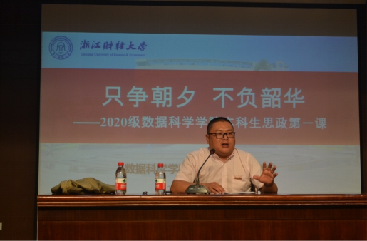 党委书记段雪辉以《只争朝夕,不负韶华》为题给2020级本科上了一堂精彩的党建思政课。他指出,作为一名大学生,应学会立大德、明大志、做小事,始终要有家国情怀,在人生道路上怀揣梦想、脚踏实地。而后段书记通过自身年少求学的经历告诉我们“吃苦”精神的可贵,同时希望新生们能多参加学生会、社团等组织,从中弥补不足、全面发展自我。在一个多小时的讲课中,段书记用数据和鲜活的案例与同学们交流分享了大学学习成长的历程,同学们纷纷表示受益颇多,并下定决心要在财大塑造出一个全新的自我。