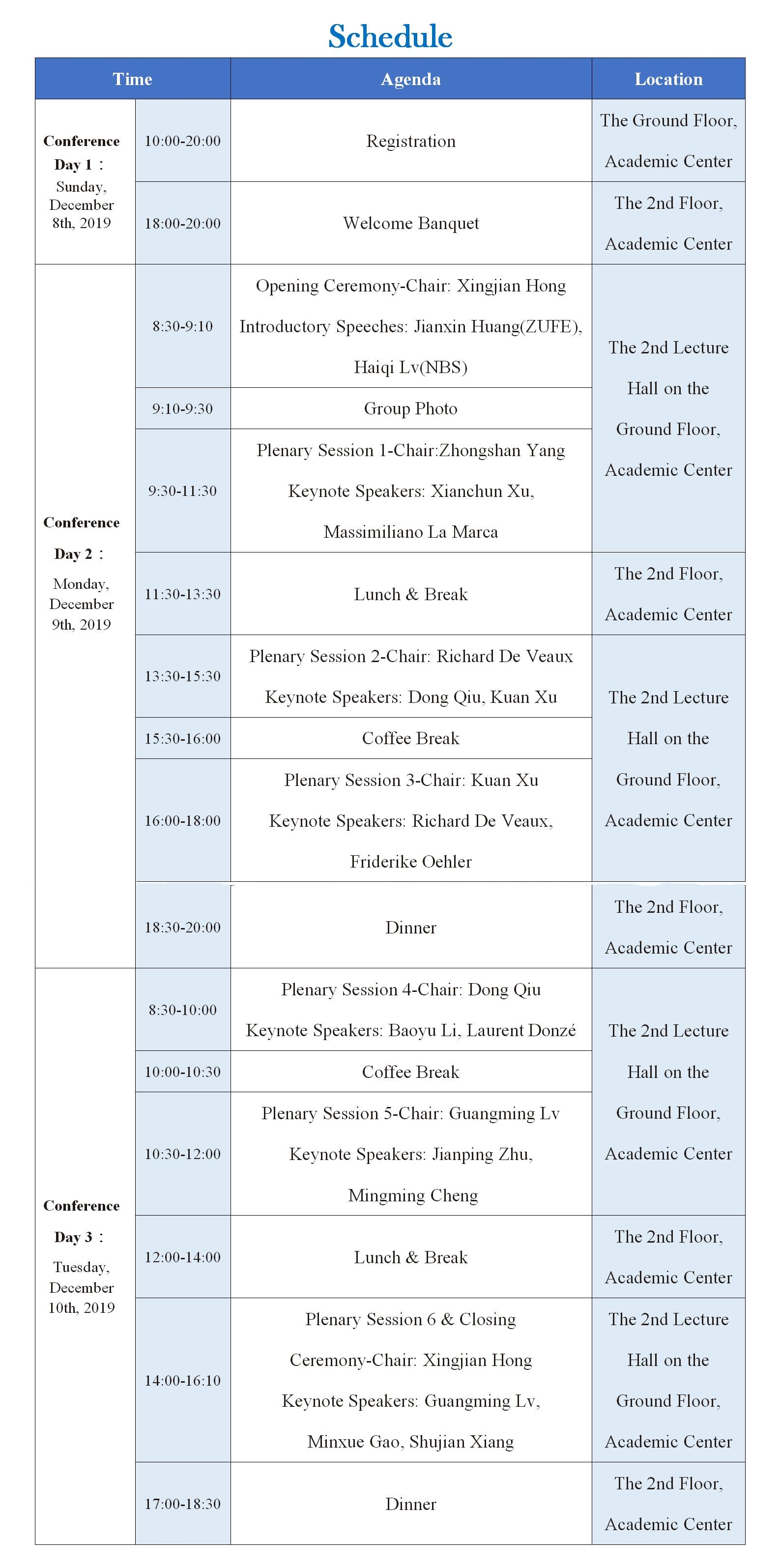 The 1st ZUFE International Conference on Economic Statistical Measurement and National Accounting, organizing by School of Data Sciences, Zhejiang University of Finance & Economics (ZUFE), will be held in Zhejiang University of Finance & Economics, December 8th-10th, 2019. Schedule and keynote speeches (a brief introduction) are as followed.