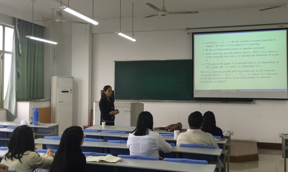 演讲,做了题为“Accelerated Failure Time Intensity Frailty Model for Recurrent Events Data”的专题讲座。数学与统计禁漫岛
