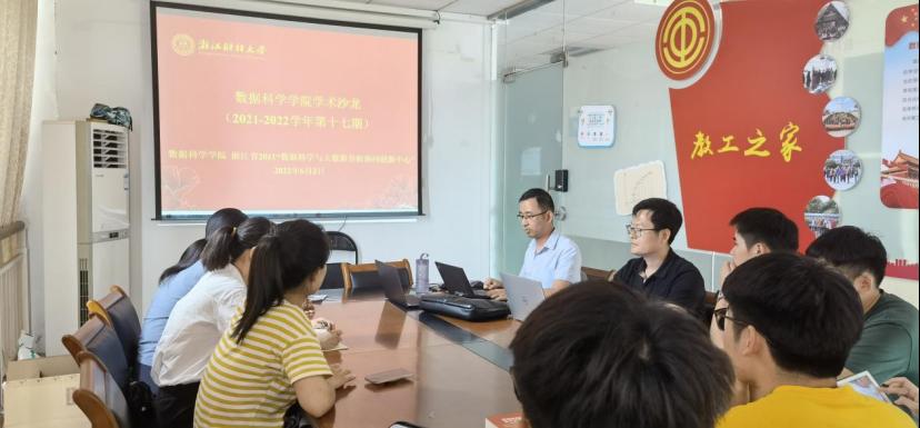 暨数据科学与大数据分析协同创新中心举办了2021-2022学年第十七期学术沙龙。数据科学与大数据技术系季家兵博士为师生带来了一场题为“The Study of dynamical neural field modeling based on fractal sets”的学术报告,报告由系主任刘磊主持,十余位教师和研究生参加了报告。