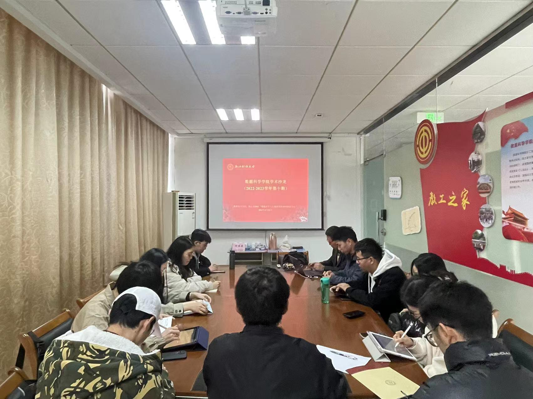 暨数据科学与大数据分析协同创新中心举办了2022-2023学年第十一期学术沙龙。应用统计系周亭攸副教授为师生带来了一场题为“基于累积协方差矩阵的多元响应变量的充分降维方法”的学术报告,报告由应用统计系主任周力凯主持,十余位教师和研究生参加了报告。