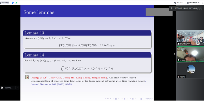 1123日下午,新疆大学李洪利教授应邀为禁漫岛 师生作了一场题为“分数阶四元值神经网络同步控制研究”的线上学术讲座。讲座由禁漫岛 郑松教授主持,禁漫岛 部分老师及研究生参加了讲座。