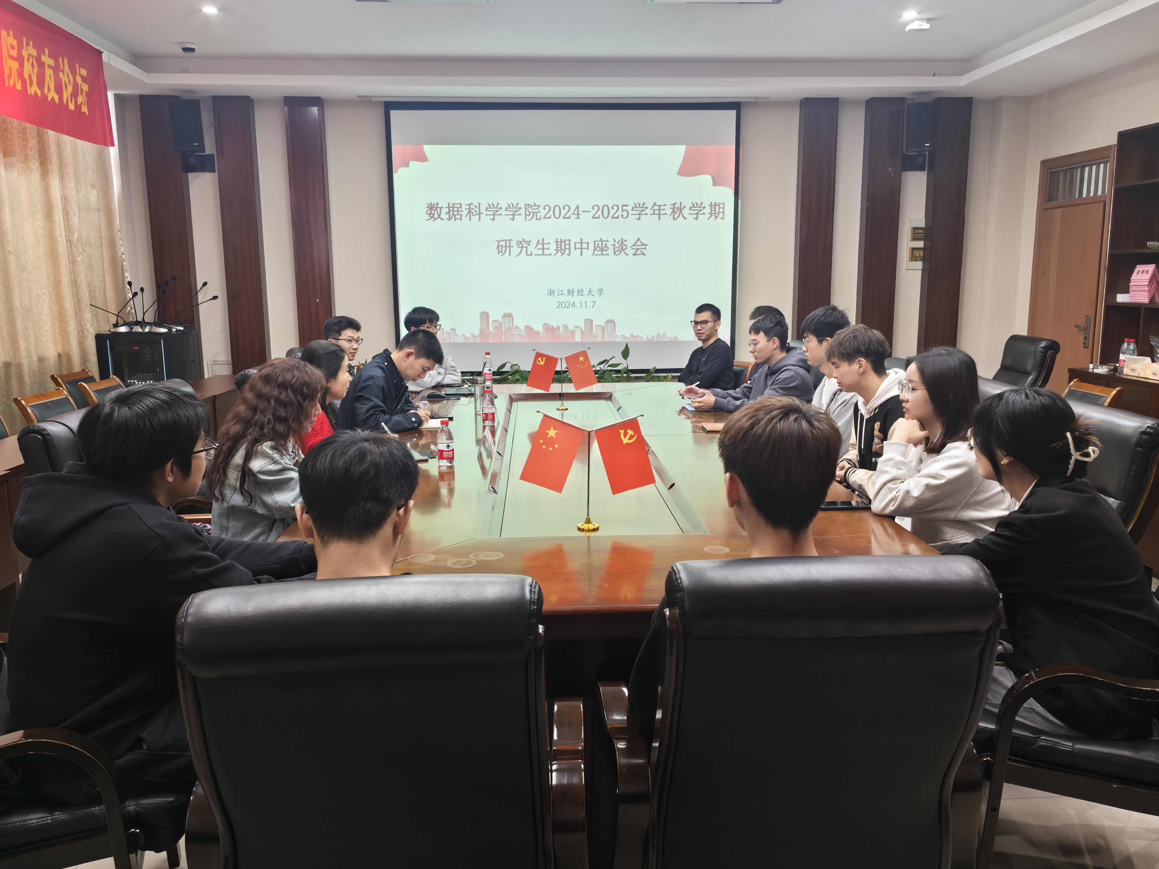 举行2024-2025学年秋学期研究生期中座谈会。座谈会由副院长刘波主持,校研究生督导组成员吴丽民、学位点负责人代表李云霞及23、24级研究生代表参加此次座谈会。