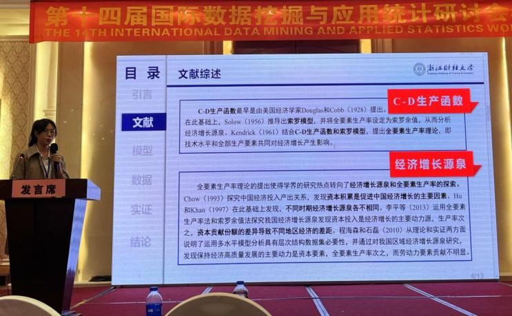 罗季教授和2021级应用统计专业硕士研究生左一鸣参加了会议,并由左一鸣作了题为“基于多水平模型的中国乡村经济增长源泉研究”的学术报告,得到与会专家学者的充分肯定。